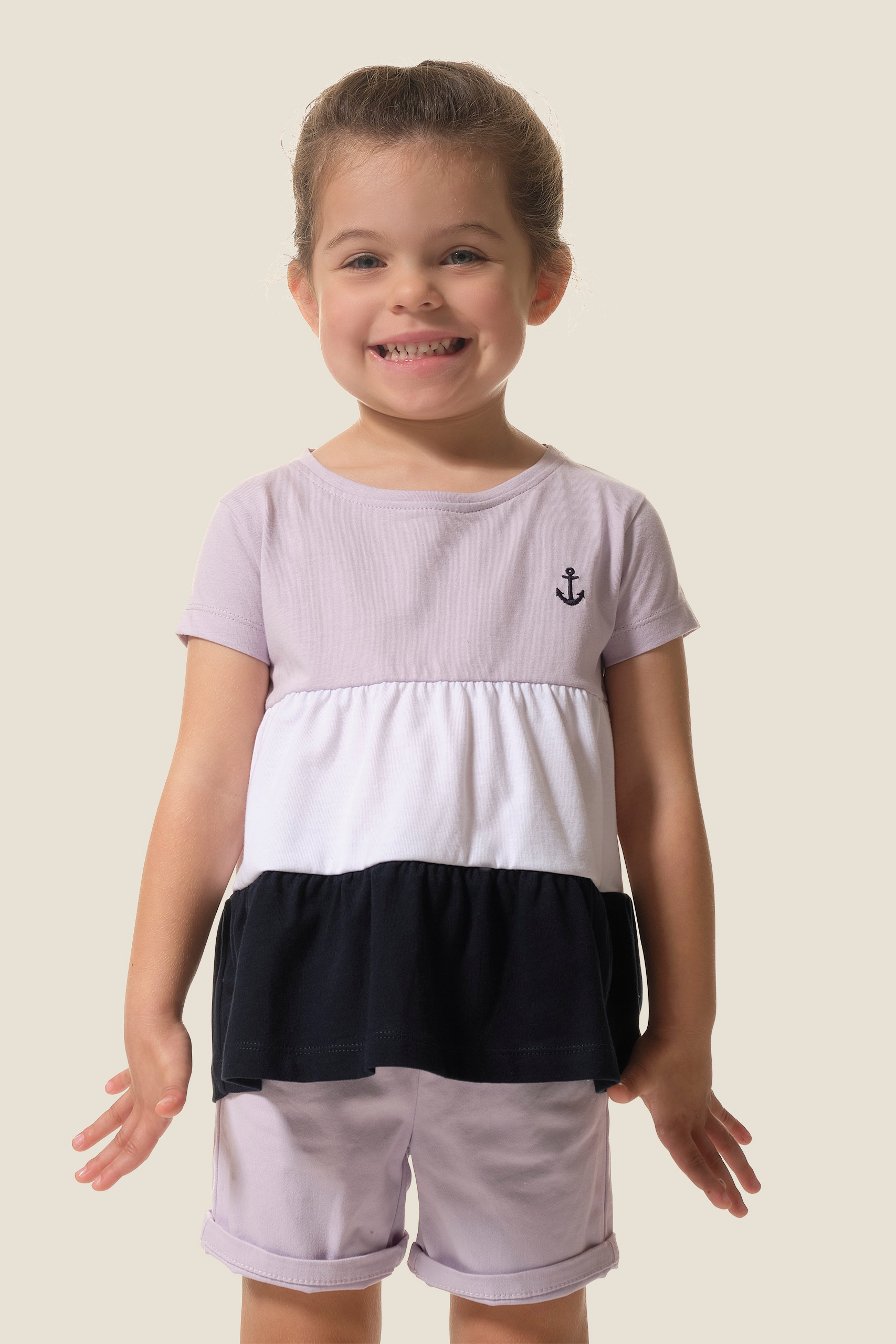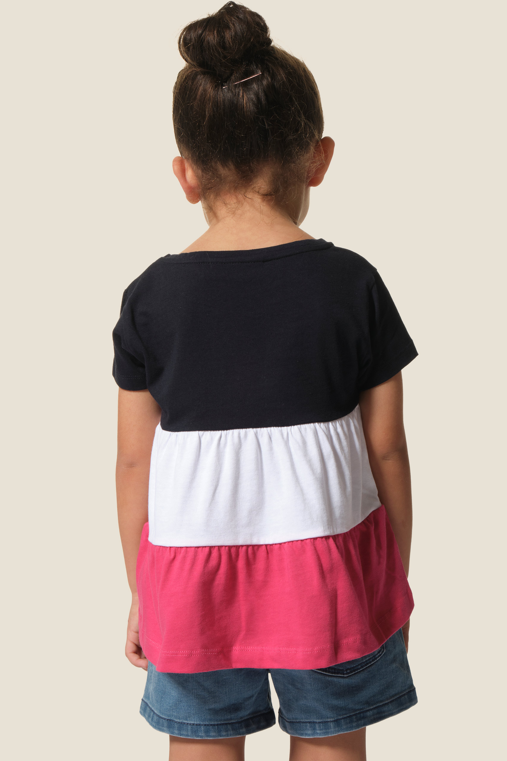 - Tee-shirt fille manches courtes, dรฉcoupes tricolores