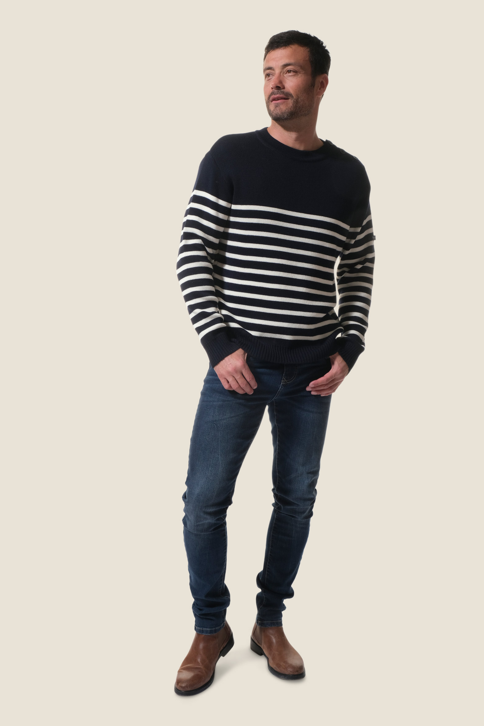 • Pull marin col rond
