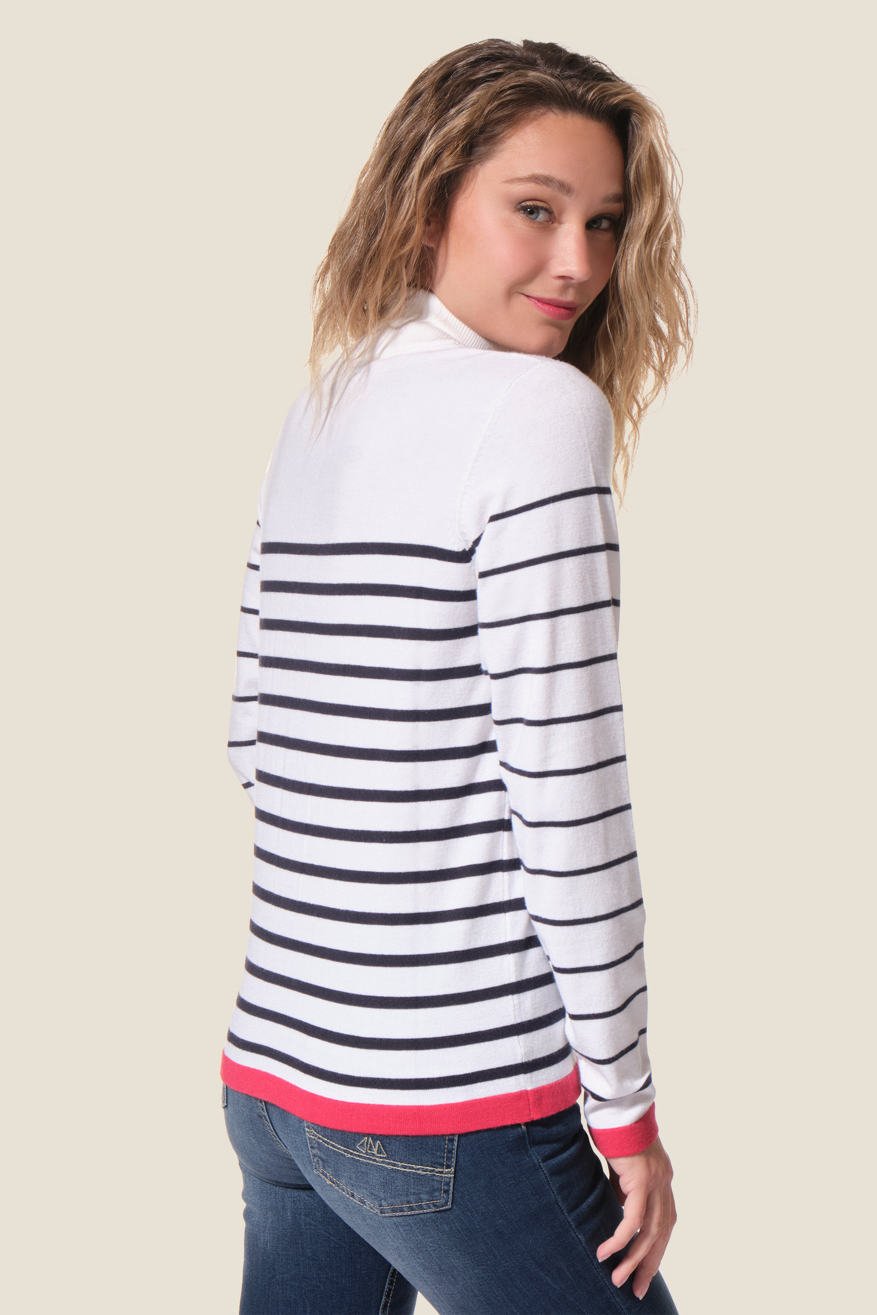 - Pull manches longues rayé avec une rayure dorée